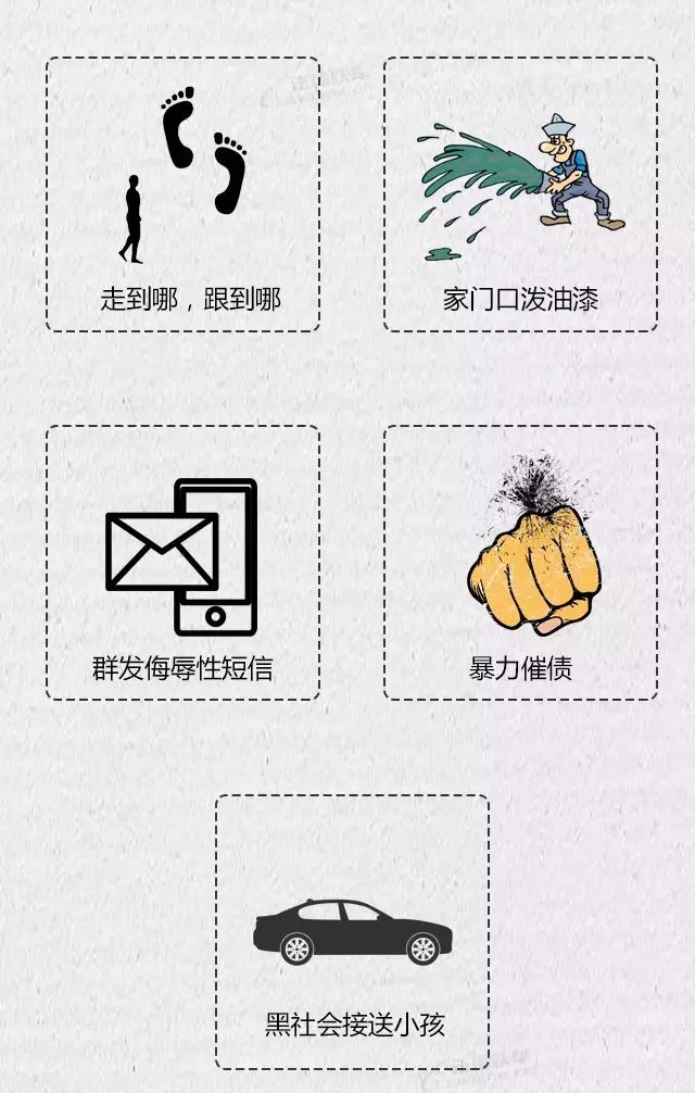 暴利催生暴力,有高利贷的地方,几乎都能看到暴力催债的影子。譬如,对当事人用“呼死你”软件日夜骚扰,群发侮辱性信息给亲友;如影随形、死缠烂打,限制当事人行动自由;将女大学生裸照作抵押,不还钱就公开暴光甚至“性偿”。