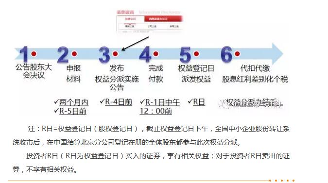 注:R日=权益登记日(股权登记日),截止权益登记日下午,全国中小企业股份转让系统收市后,在中国结算北京分公司登记在册的全体股东都参与此次权益分派。